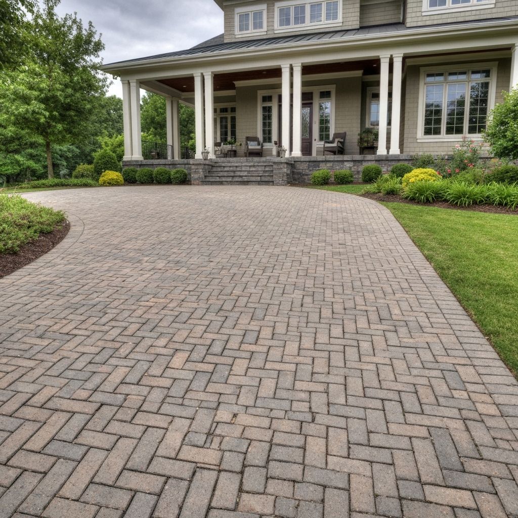 Herringbone pattern (45° or 90°) is the gold standard for driveways as it provides maximum interlock strength under vehicle loads. Running bond is also excellent. We'll recommend the best pattern based on your aesthetic preferences, home style, and driveway dimensions.